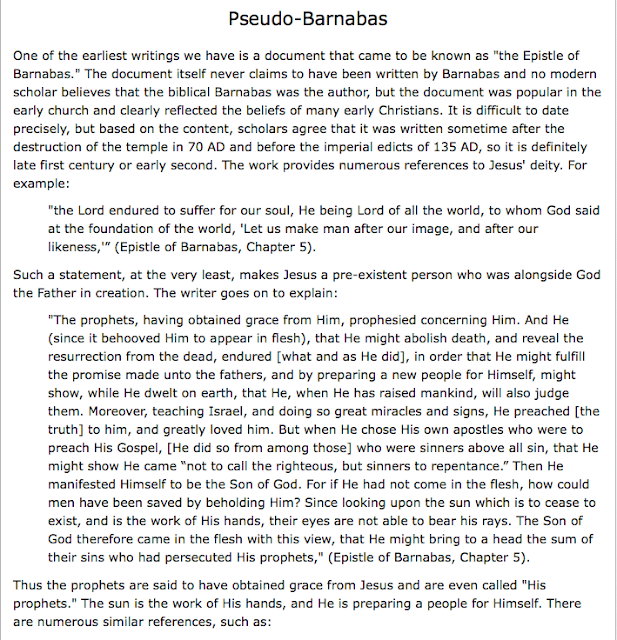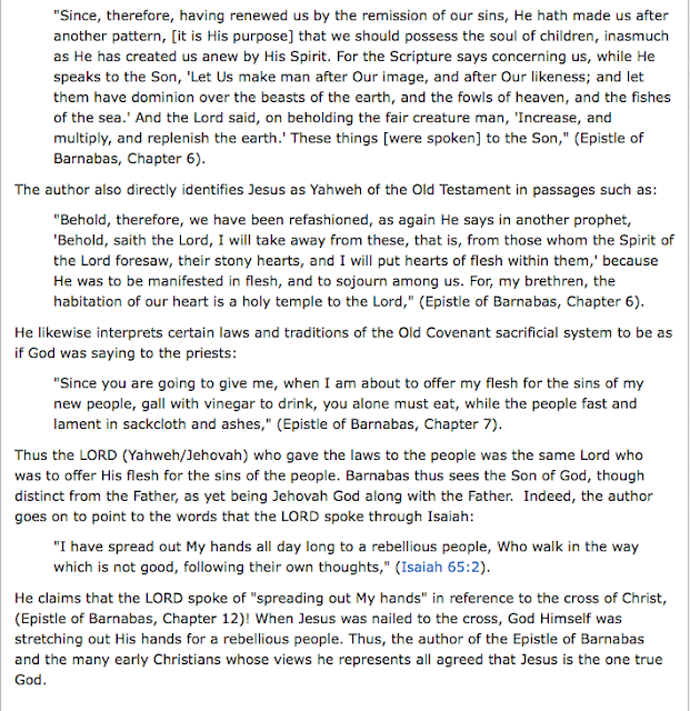 Notice how Trinitarians like Tim Barnett DELIGHT in showing us how the Apostolic Fathers taught and believed Jesus is GOD, NOT UNDERSTANDING how they are proving with their own HANDS they BELIEVE and FOLLOW the FALSE PROPHETS.