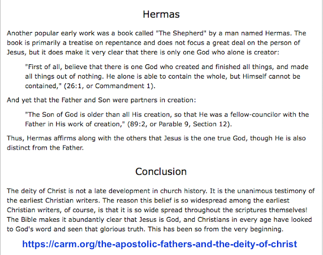 So the answer too: Did ANY of  these Apostolic Fathers believe and teach what is NOT taught in the Bible, that Jesus is the SAME GOD as His Father GOD.