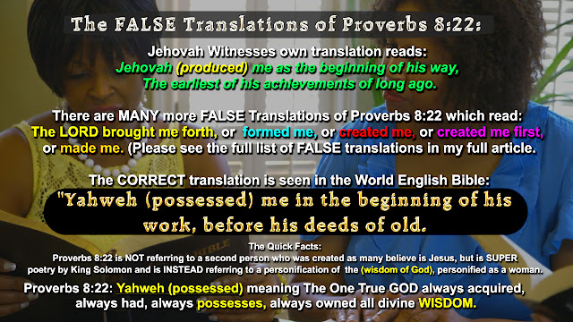 The LORD brought me forth, or formed me, or created me, or created me first, or made me. (Please see the full list of FALSE translations in my full article.